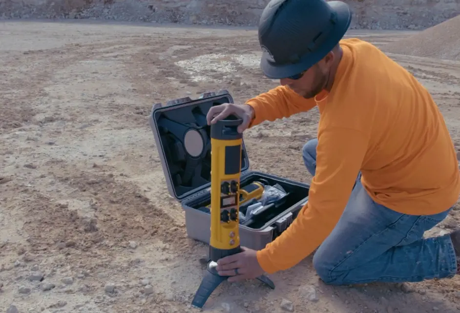 - Cuando las coordenadas GPS de los barrenos de voladura no están disponibles, el etiquetador DGPS puede registrar las posiciones de los barrenos e importarlas al software ViewShot 3D.